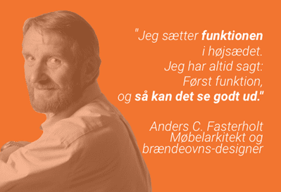 Danske Anders C. Fasterholdt er uddannet møbelsnedker og møbelarkitekt. Han ser en brændeovn som mere end bare en varmekilde – for ham er det også en møbelgenstand.