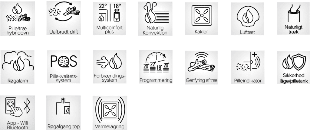 En HYBRIDOVN er således en “hybrid” mellem en pilleovn og en brændeovn. Den giver dig derfor det bedste af to verdener: