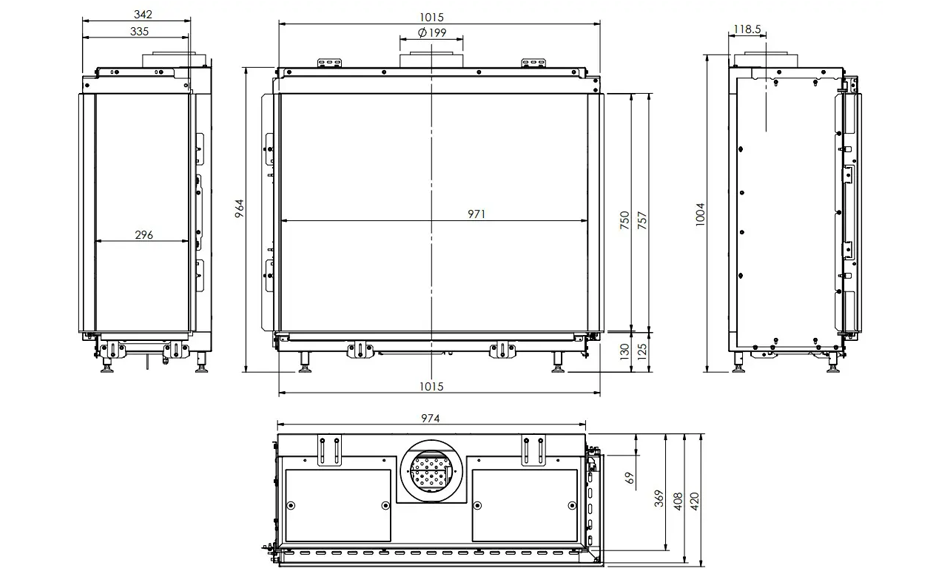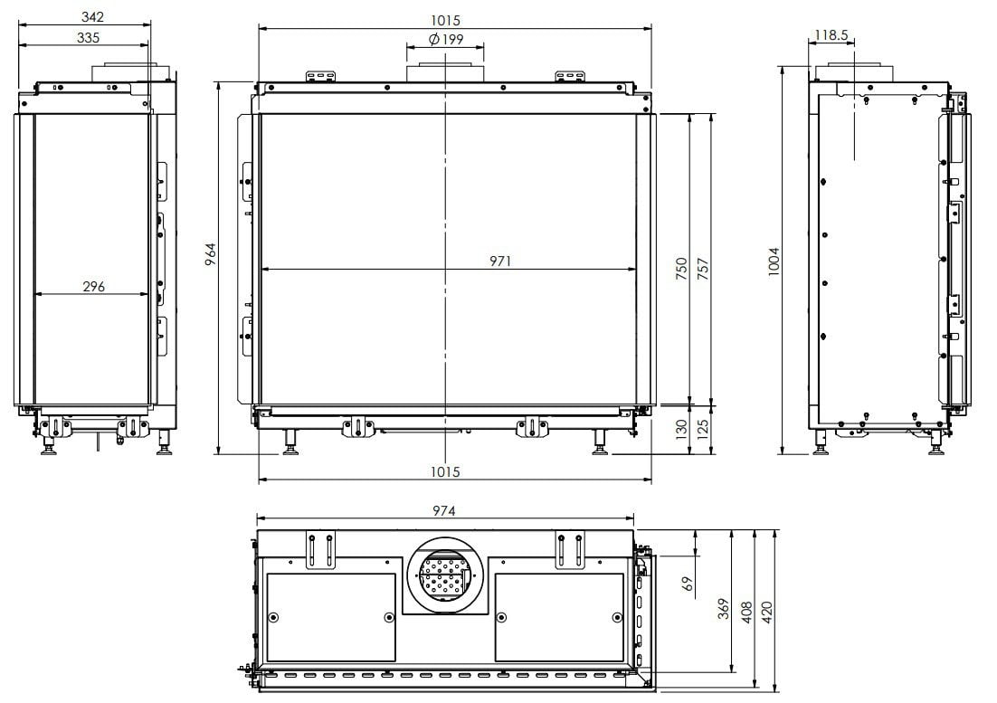 ELEMENT4 BIDORE 100 2-sidet gaspejs kræver et balanceret aftræk, og modellen er til indbygning. De indvendige sider er beklædt med metal, men du kan tilvælge sider i sort spejlglas. Til bunden af pejsen kan du vælge mellem forskellige stentyper eller keramisk brænde. Denne model er standard udstyret med single brænder.