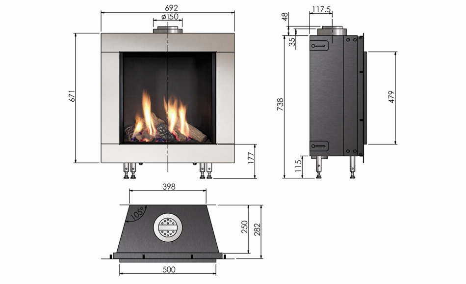ELEMENT4 CUPIDO 50 er en 1-sidet gaspejs, der er beregnet til indbygning. Den kræver et balanceret aftræk ud gennem en ydermur eller op gennem taget. En gaspejs med balanceret aftræk er et lukket forbrændningssystem. Derfor kommer der ingen gaslugt ud i rummet. Modellen kan køre på flaske- eller naturgas. Den leveres med fjernbetjening, og der kan tilvælges app-styring.
