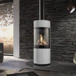 Den lysegrå farve og det slanke stålmateriale giver den fritstående gaspejs et moderne og tidløst udseende, der passer ind i enhver boligindretning.