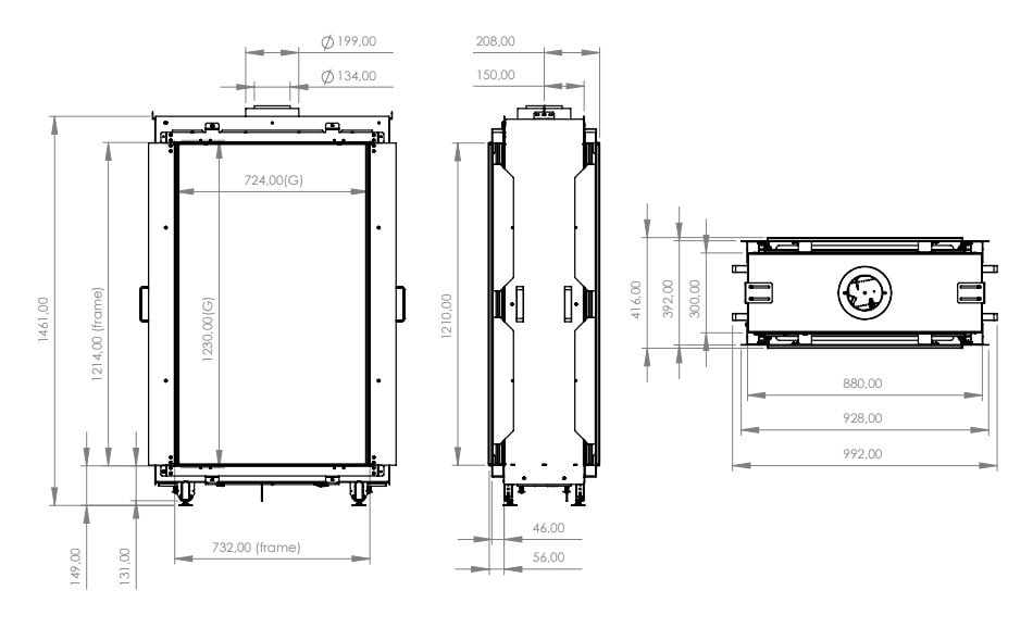 Brændeovnsgitter til brændeovn og pejs. Låge 710 x...