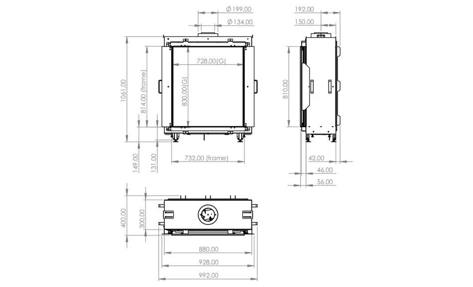 Brændeovnsgitter til brændeovn og pejs. Låge 710 x...