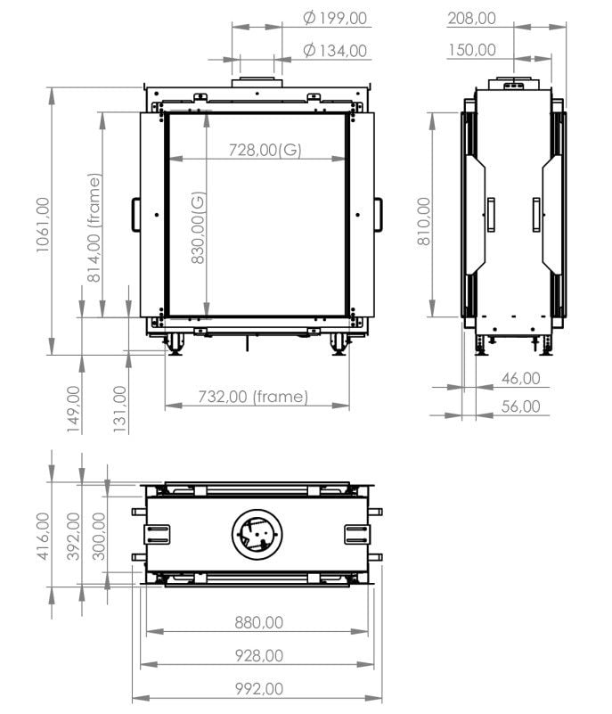 Brændeovnsgitter til brændeovn og pejs. Låge 710 x...