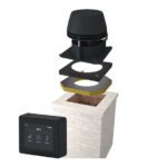 Betjeningspanelet kan også monteres ved siden af pejsen eller brændeovnen.