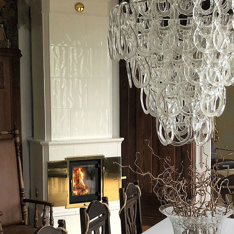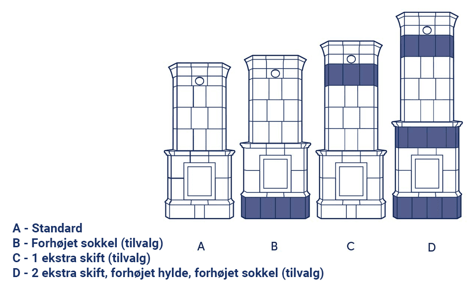 En af Ekebys store fordele er muligheden for tilpasning. Ovnen kan leveres i forskellige højder og med detaljer som messingdøre eller ståldøre, ekstra gesimser eller specialglasur efter eget ønske. Uanset om du ønsker en diskret hvid kakkelovn eller et unikt, håndmalet midtpunkt i stuen, kan vi opfylde dine ønsker. Med en totalvægt på cirka 1400 kg og basemål på 96 x 60 cm er ovnen kompakt nok til de fleste boliger, men massiv nok til at lagre varme i døgndrift. Ekeby er ikke blot en energibesparende løsning – den er en varig investering i hjemmets atmosfære, komfort og værdi i mange år frem.