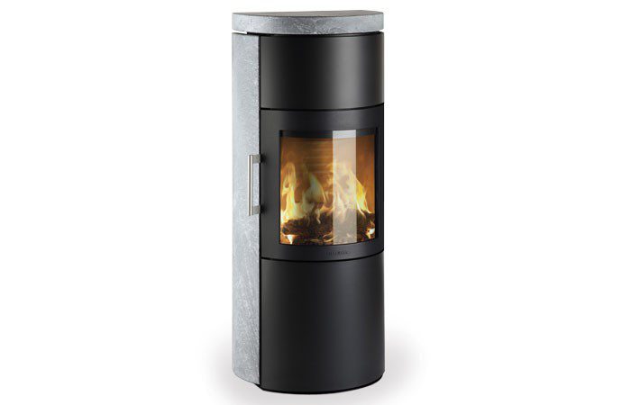 HWAM® 3520 SmartControl™ er en danskproduceret brændeovn, der kan vælges i farven grå og sort, og derudover kan den fås med fedt- eller sandsten.