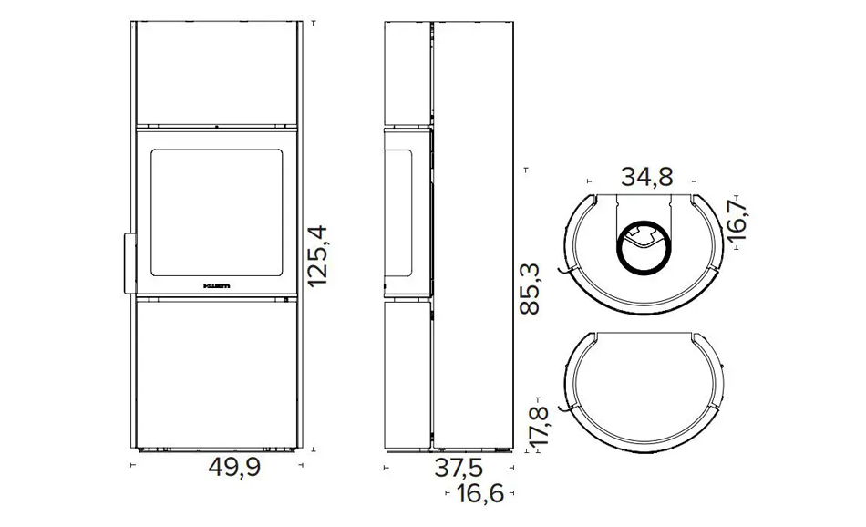 Hwam 3740 SmartControl er en rund fritstående brændeovn. Den runde form understreges af konvektionsrillen, der følger ovnen kant. Dette er med til at give modellen et lækkert look.
