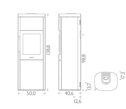 HWAM® 4660 leveres i sort eller grå, og der er to typer låge at vælge mellem: klassisk støbejern (4560c) eller moderne glaslåge (4560m). Begge lågetyper har et ventilleret håndtag, der ikke bliver varmt – heller ikke når ovnen er meget varm. Denne fritstående brændeovn har et magasin, hvortil der kan købe varmelagringssten.