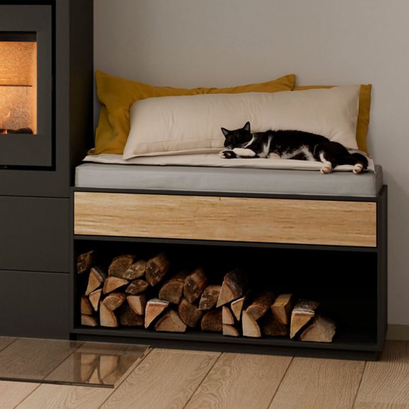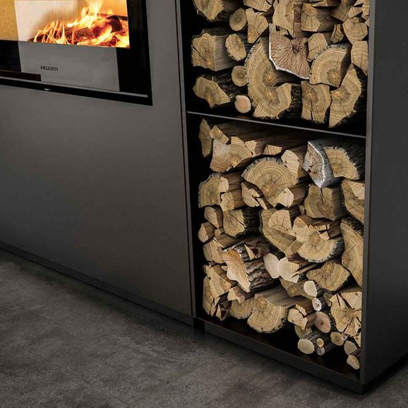 HWAM® 5610 er modulopbygget og kan tilpasses med opbevaringsløsninger til brænde og optændingsudstyr. Du kan vælge højrehængt eller venstrehængt låge, så brændeovnen passer perfekt ind i din boligindretning. En fleksibel og driftssikker løsning til dig som kvalitetsbevidst boligejer.