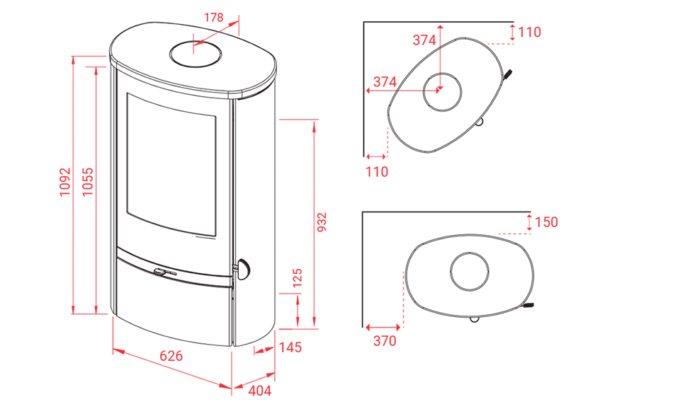 Fritstående brændeovn |