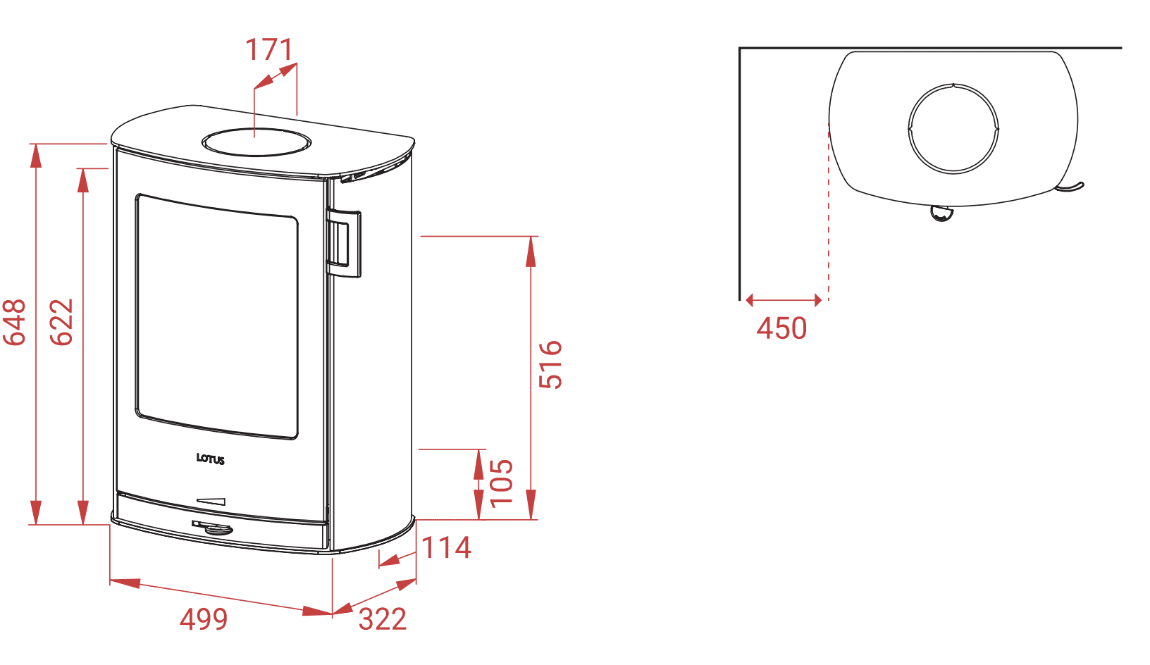 Væghængt brændeovn |
