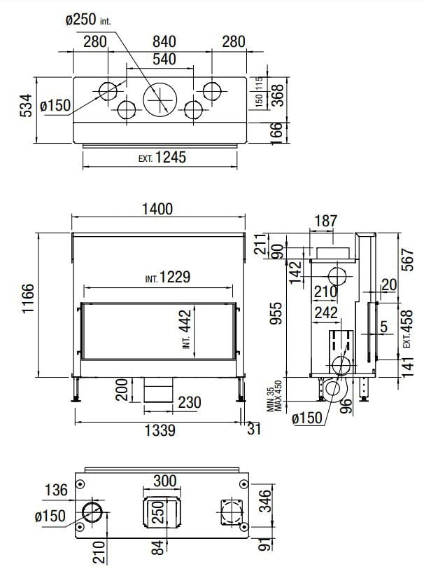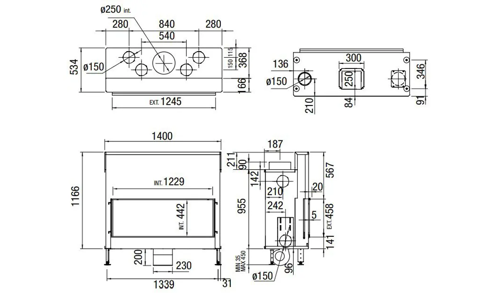 Med en åbning på 123 x 45 cm er der et meget flot kig til flammerne. Modellen er udstyret med hævelåge, og du kan tilvælge en frontramme på 5, 45, 75 eller 105mm. Et spjæld i aftrækket åbnes automatisk, når du åbner lågen. Det betyder, at der ikke kommer røg ud i rummet, når du lægger nyt træ ind.