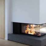 Belgiske M-Designs motto er Passion For Fire. Selskabet står bag nogle af markedets bedste pejse til træ eller gas. Modellen har brede glas på hver side, samt et smalt på den ene ende. Derfor kaldes modellen også en Roomdivider.