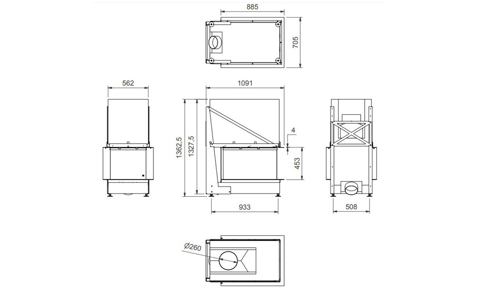 Luna Diamond 750RD er en 3-sidet pejseindsats, der er beregnet til indbygning og fyring med træ.