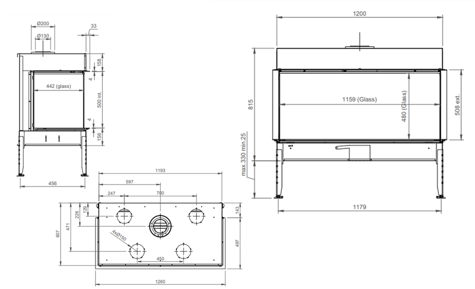 Brændeovnsgitter til brændeovn og pejs. Låge 710 x...