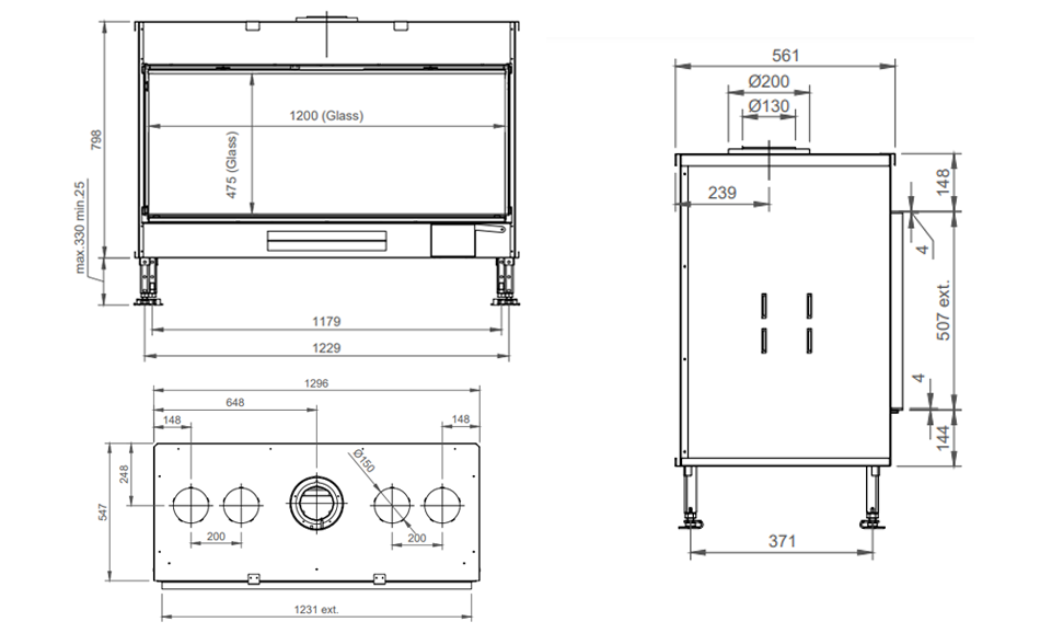 Brændeovnsgitter til brændeovn og pejs. Låge 710 x...
