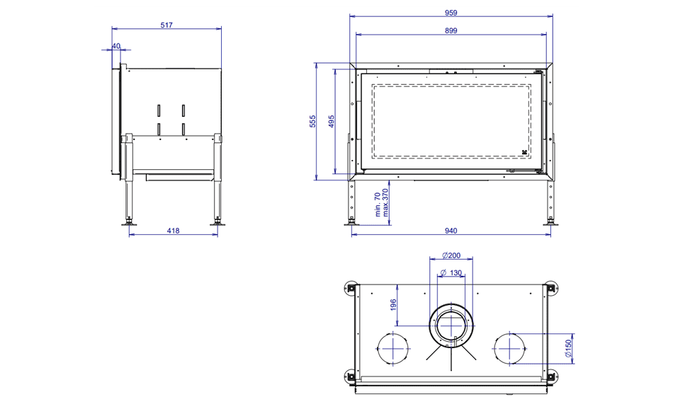 | Indbygningsmål (cm): | D48 x H56 x L96 |