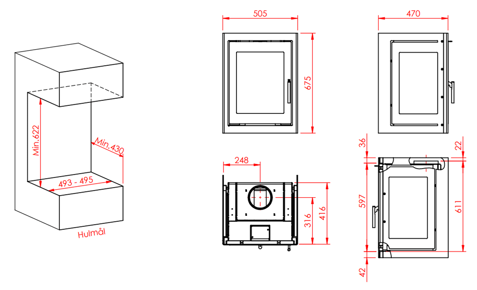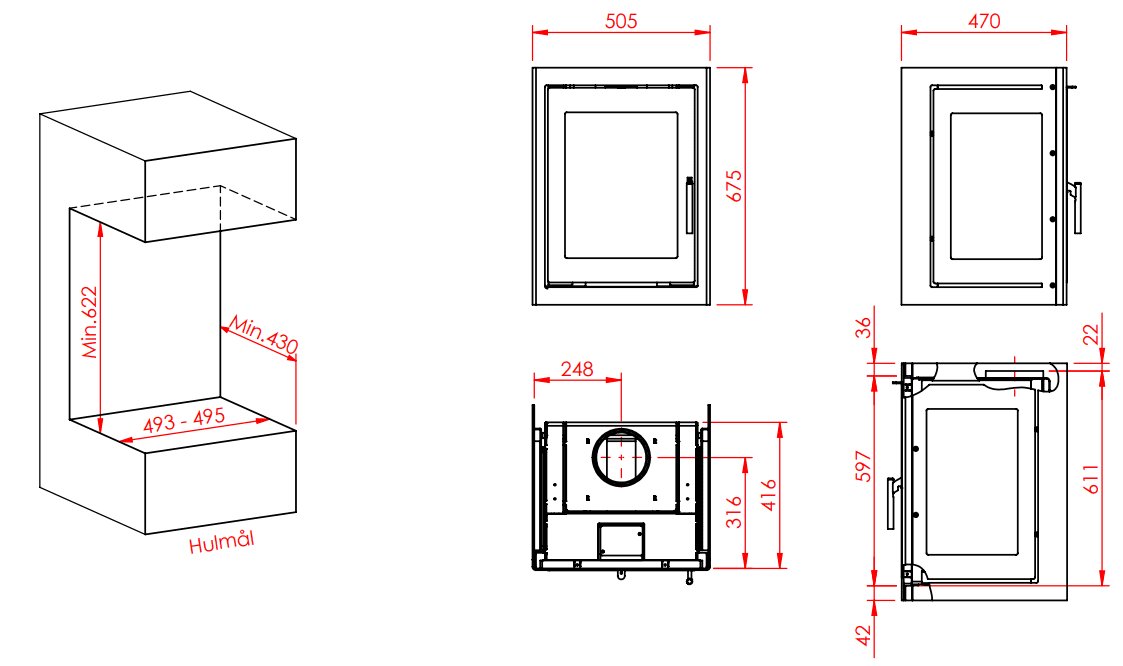 Jupiter 470 højformat med fast glas er en elegant pejseindsats. Modellen er beregnet til indbygning, og den skal tilsluttes en velfungerende og korrekt dimensioneret skorsten.