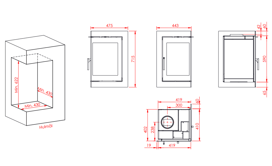 2-sidet & hjørne pejseindsats |
