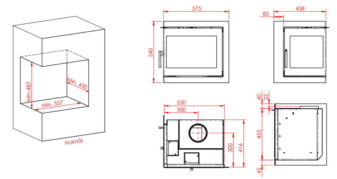 Jupiter 470 2-sidet pejseindsats er udstyret med en svingbar vinkellåge. Det er en elegant løsning, der giver dig god plads, når du skal fylde brænde i pejsen. Modellen er beregnet til indbygning, og den skal tilsluttes en velfungerende og korrekt dimensioneret skorsten.
