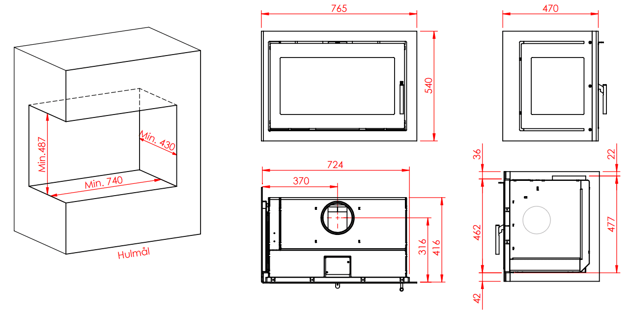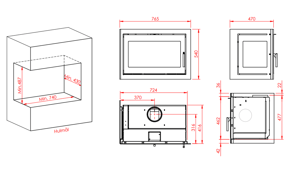 Jupiter 470 XL med fast glas er en elegant pejseindsats. Modellen er beregnet til indbygning, og den skal tilsluttes en velfungerende og korrekt dimensioneret skorsten.