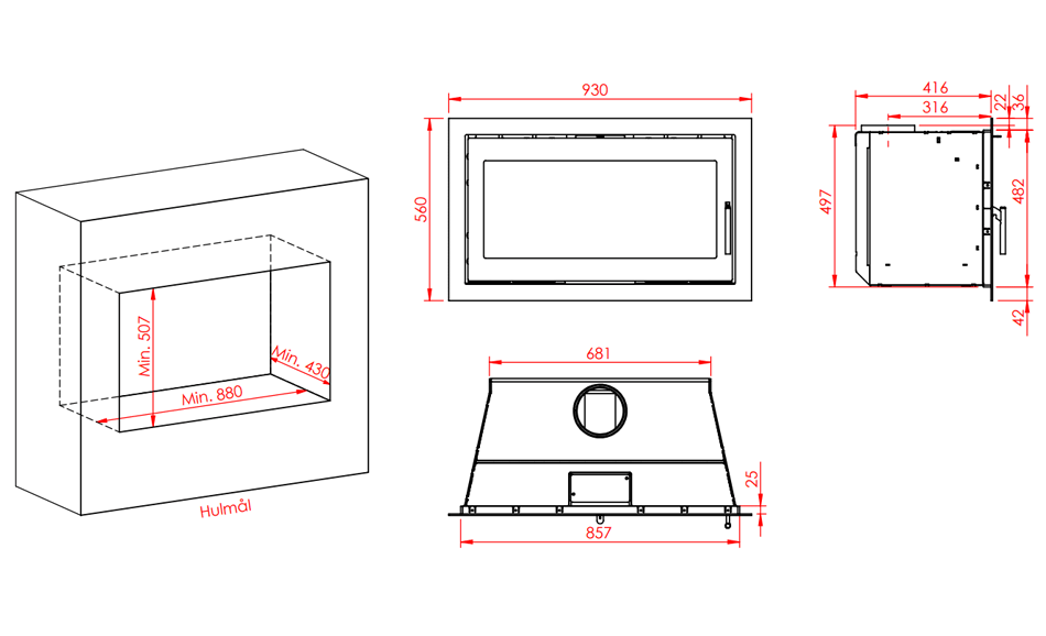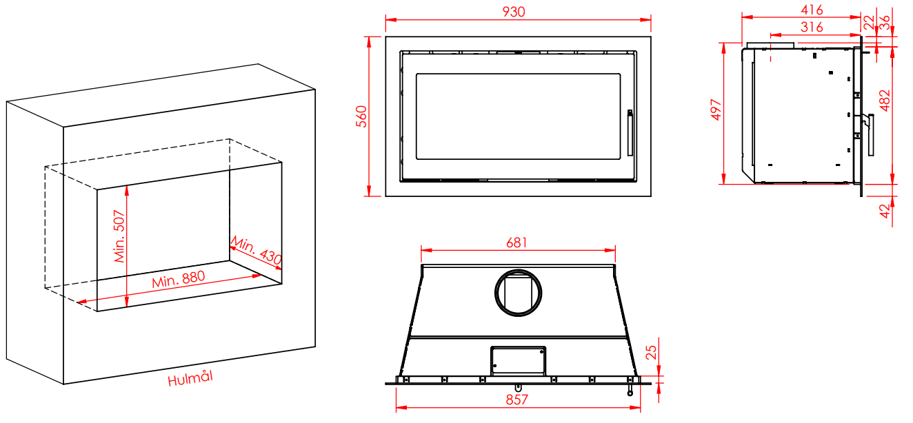 En pejseindsats kræver altid en korrekt dimensioneret og korrekt monteret skorsten. Hos Himmerlands Pejsecenter har vi 30 års erfaring med salg og montering af pejse.- og skorstensløsninger. Vi udarbejder altid et skriftligt tilbud før en opgave påbegyndes. Kontakt en vore medarbejdere, hvis du vil vide mere om Meteor 550-850 1-sidet pejseindsats. Hos os er dit pejseprojekt i trygge hænder.