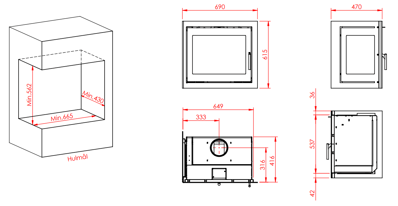Jupiter 550 med fast glas er en elegant pejseindsats. Modellen er beregnet til indbygning, og den skal tilsluttes en velfungerende og korrekt dimensioneret skorsten.