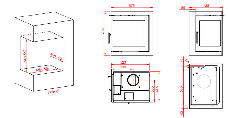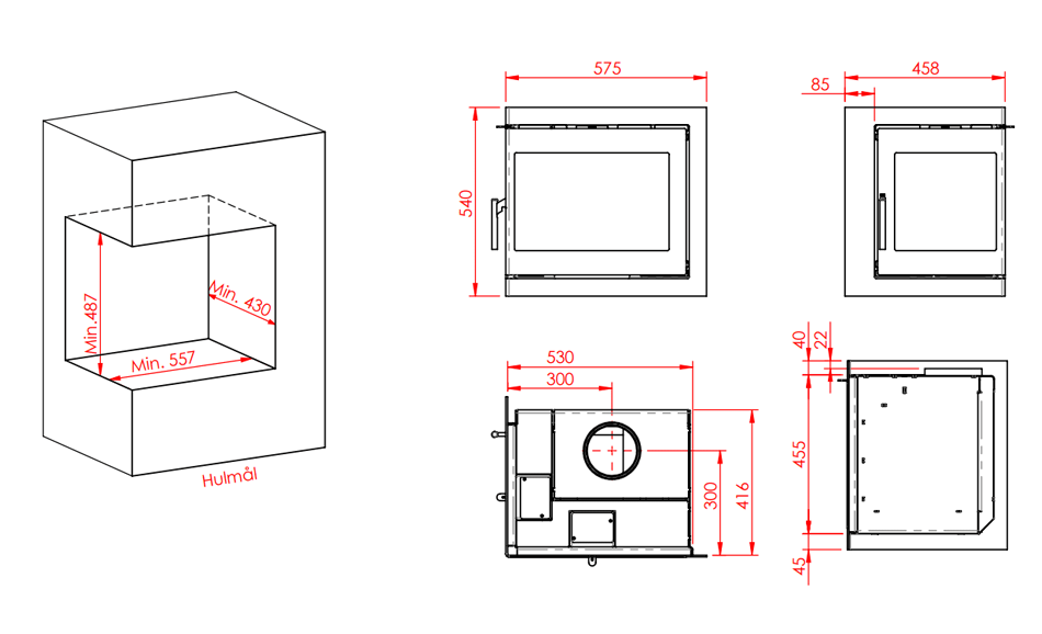 Jupiter 550 2-sidet pejseindsats er udstyret med en svingbar vinkellåge. Det er en elegant løsning, der giver dig en god del plads, når du skal fylde brænde i pejsen. Modellen er beregnet til indbygning, og den skal tilsluttes en velfungerende og korrekt dimensioneret skorsten.