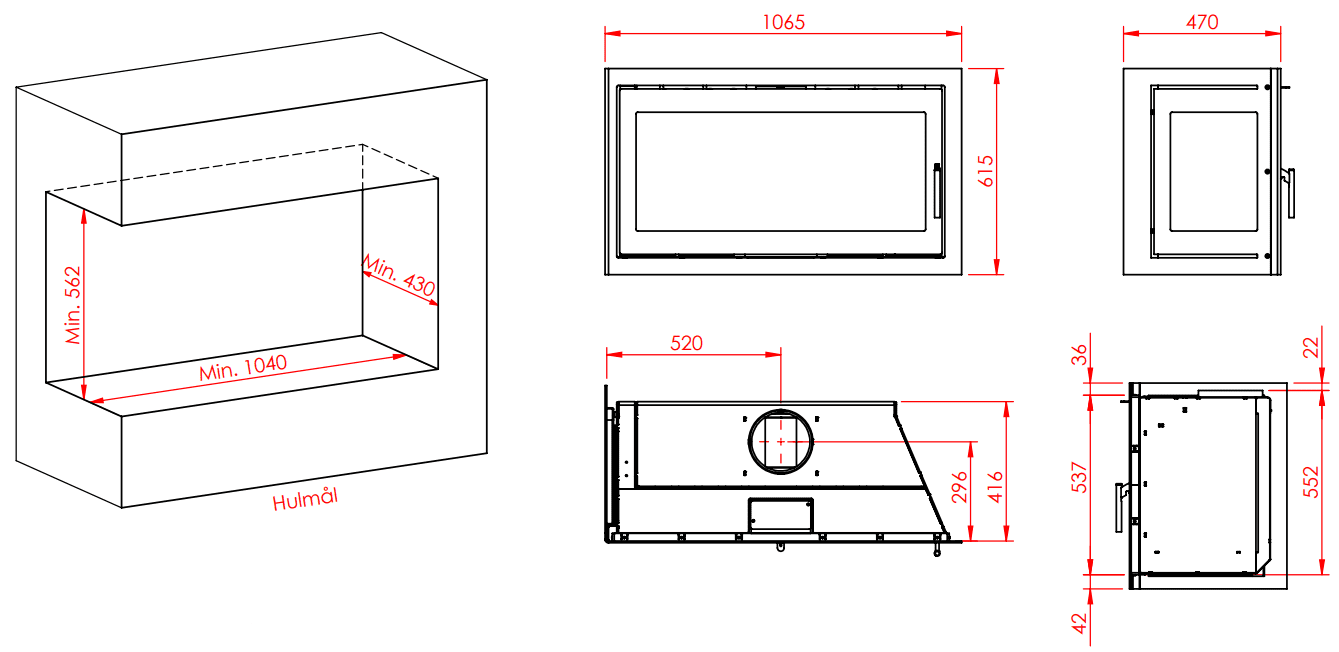 | .Brændkammerbredde (cm) |