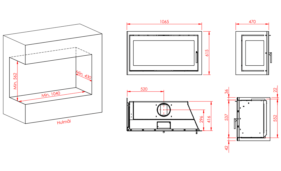 2-sidet & hjørne pejseindsats |