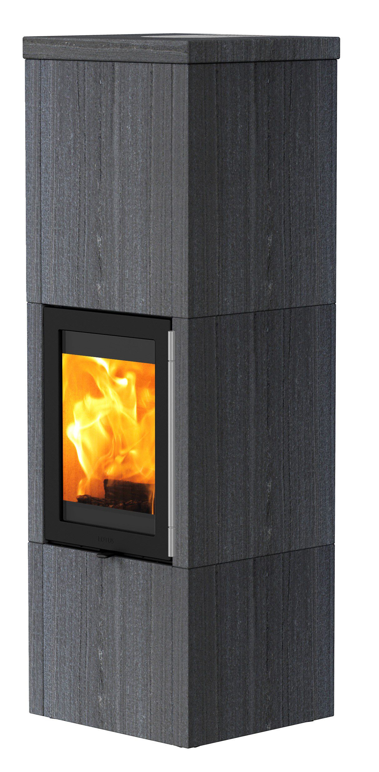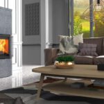Brændeovnsmodellen er beklædt med en flot stenbeklædning, der kan leveres i to farver: den klassiske grå fedtsten og den moderne mørkegrå Indian Night. Ovnens design understøttes af den elegante låge, og giver QM40 det enkle “look”, der er moderne i den nordiske boligindretning.