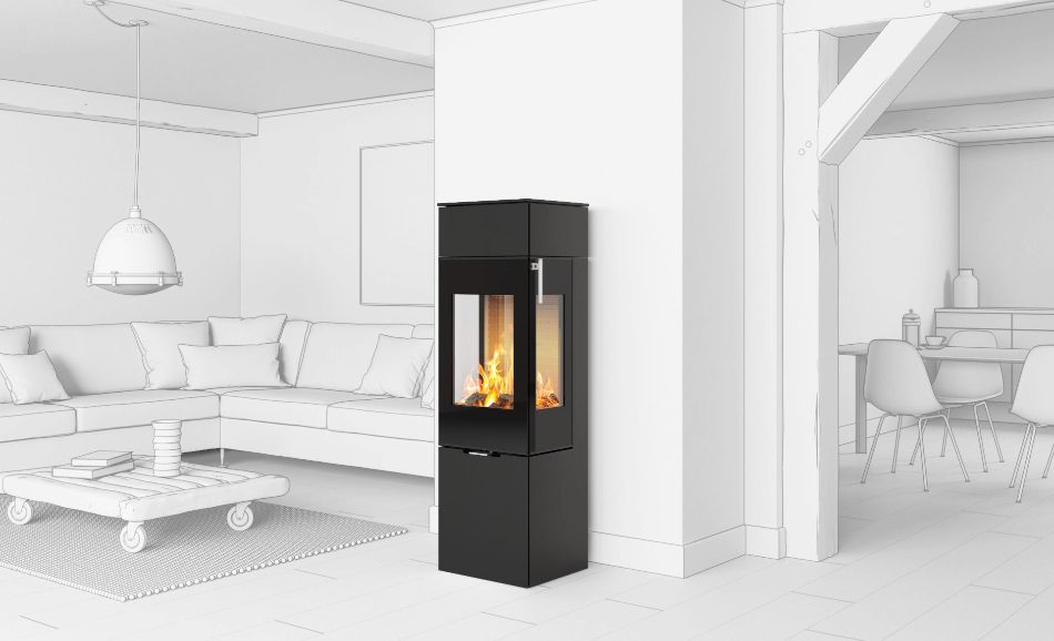 Denne brændeovnsmodel har et elegant og firkantet design, som falder i øjnene. Derudover sikrer de store glas, at der er et flot indkig til flammerne.