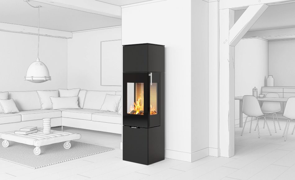 Denne brændeovnsmodel har et elegant og firkantet design, som falder i øjnene. Derudover sikrer de store glas, at der er et flot indkig til flammerne.