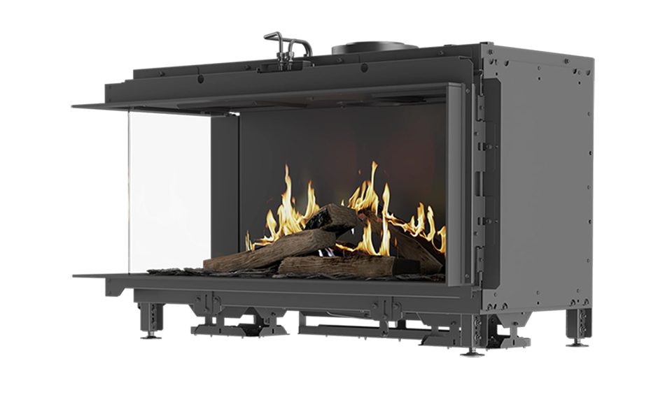 RAIS Visio 100 er en 2-sidet og hjørne gaspejs. Den har glas til venstre side, hvorved du kan nyde flammebilledet fra 2 sider.