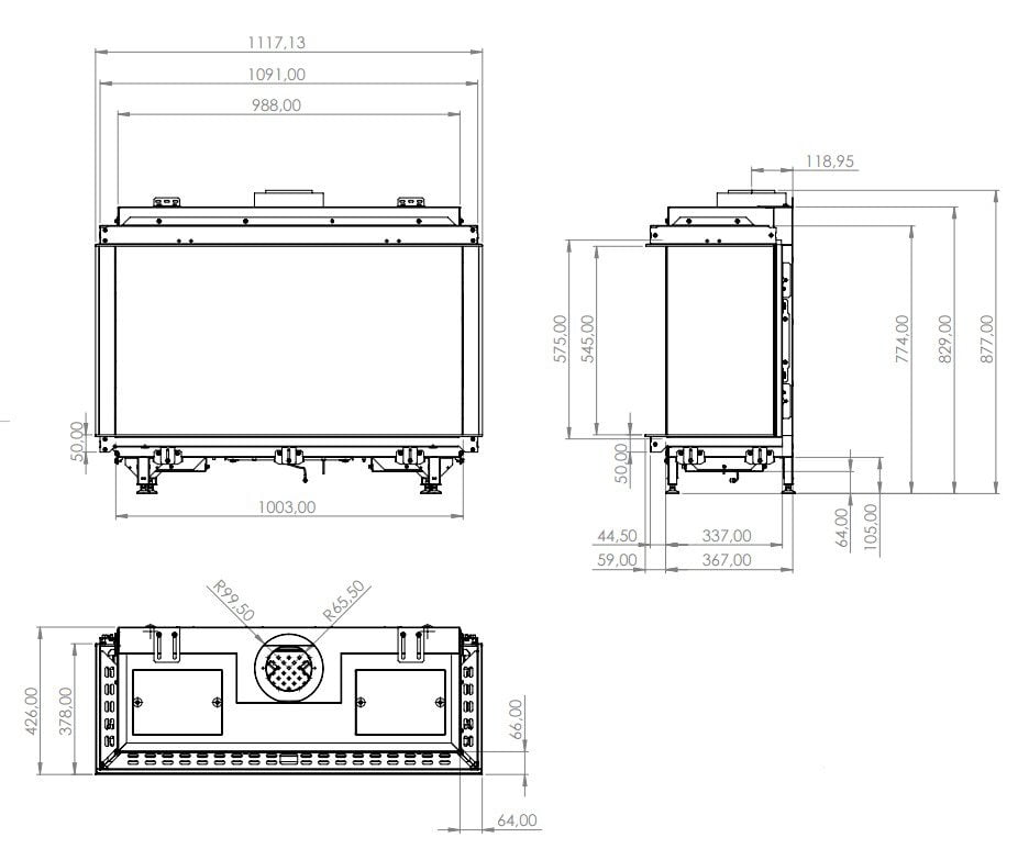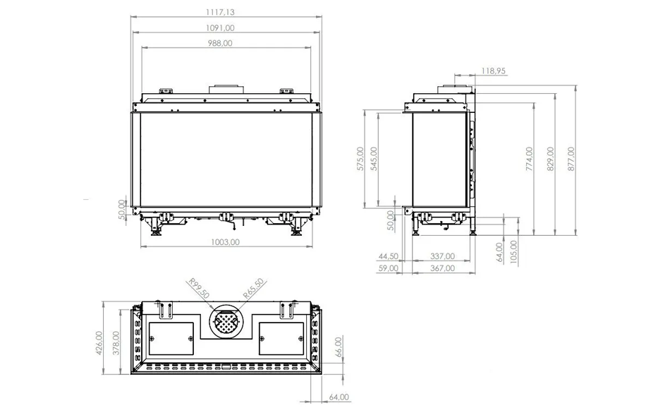 SUMMUM 100 3/S fra ELEMENT4 er en 3-sidet gaspejs, som er beregnet til indbygning. De store glas på de tre sider giver et exceptionelt godt kig til bålet. Standard leveres modellen med keramisk glas, men det er vores anbefaling, at du tilvælger refleksfri glas, fordi det reducerer genskin fra lamper og lysindfald fra vinduer.