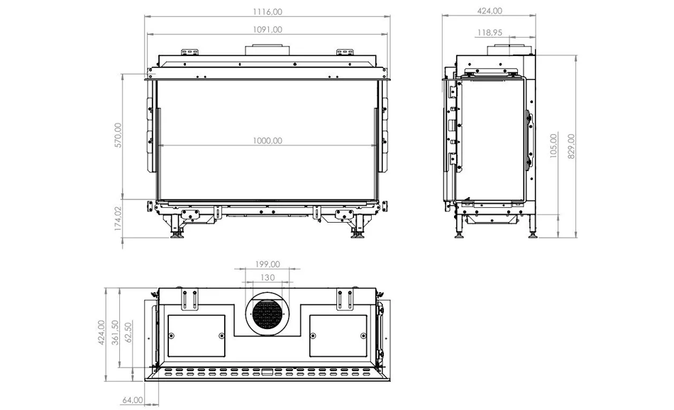 En 1-sidet gaspejs kræver et balanceret aftræk gennem en ydermur eller taget. Aftrækket og pejsen danner tilsammen et 100 procent lukket forbrændingssystem. Derfor kommer der ingen gaslugt ud i hjemmet. ELEMENT4 SUMMUM 100F leveres med et keramisk frontglas, men du kan tilkøbe refleksfri glas, som minimerer genskin.