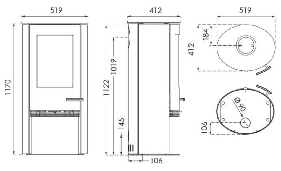 Intelligent, moderne brændeovnsteknologi gør TermeTech TT21RH til en effektiv, fritstående brændeovn. Med en virkningsgrad på imponerende 83,4 procent udnytter denne model dit brænde til det yderste. Den har et driftsområde, der ligger mellem 3 og 7 kilowatt – nok til at opvarme mellem 30 og 120 kvadratmeter. TT21RHS styres let med et enkelt håndtag, der er placeres på fronten.