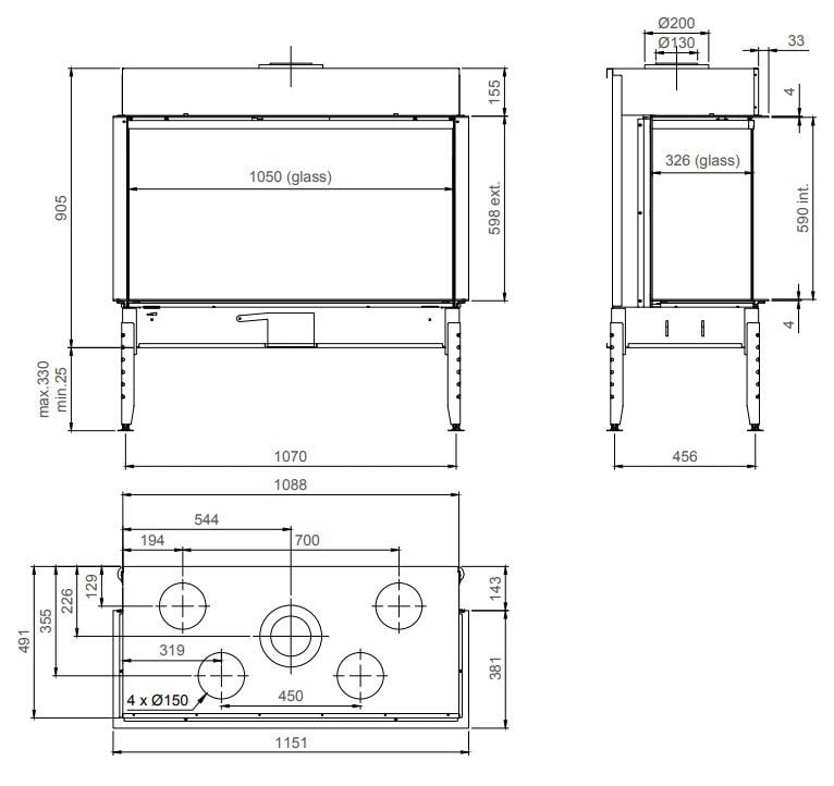 Til den indvendige beklædning kan der vælges mellem metal, støbejern eller sort spejlglas. Desuden skal bunden forsynes med keramiske “træstykker”. Alt dette er med til at give det helt rigtige udseende på pejsen. Du kan vælge mellem to glastyper til fronten: refleksfri eller keramisk. Vi anbefaler det refleksfri, fordi det giver det bedste kig til flammerne.