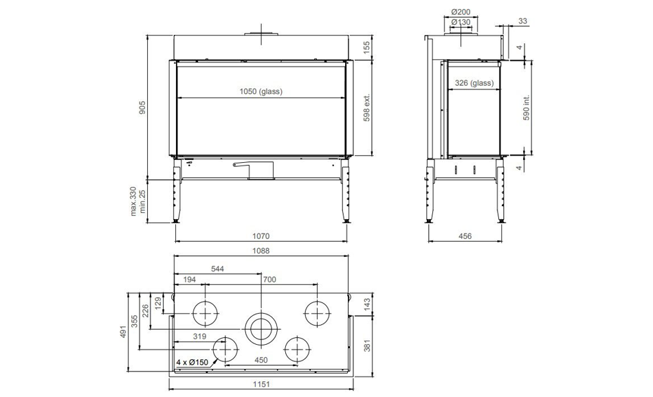 M-design True Vision 1050DC er en bred tresidet gaspejs. Den er beregnet til indbygning og balanceret aftræk gennem loft eller ydervæg. Den skal – efter endt montering – beklædes med et brandhæmmende materiale. Herefter kan den påføres en ydre beklædning. Det kunne være stål, tapet, maling eller noget helt fjerde. Det er fantasien, der sætter grænsen.