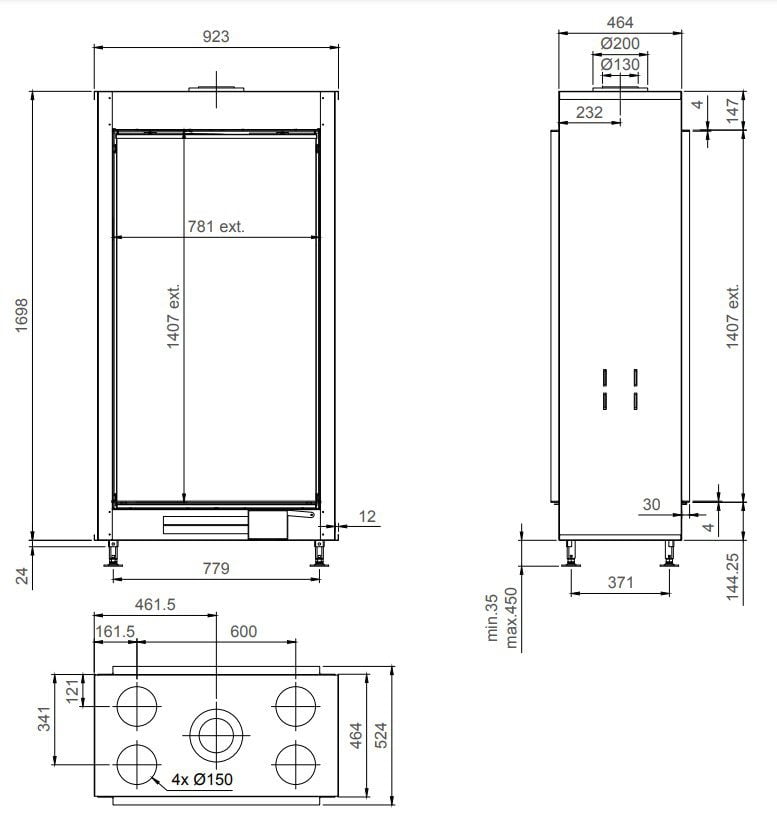 Brændeovnsgitter til brændeovn og pejs. Låge 710 x...