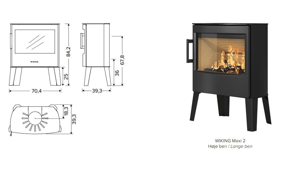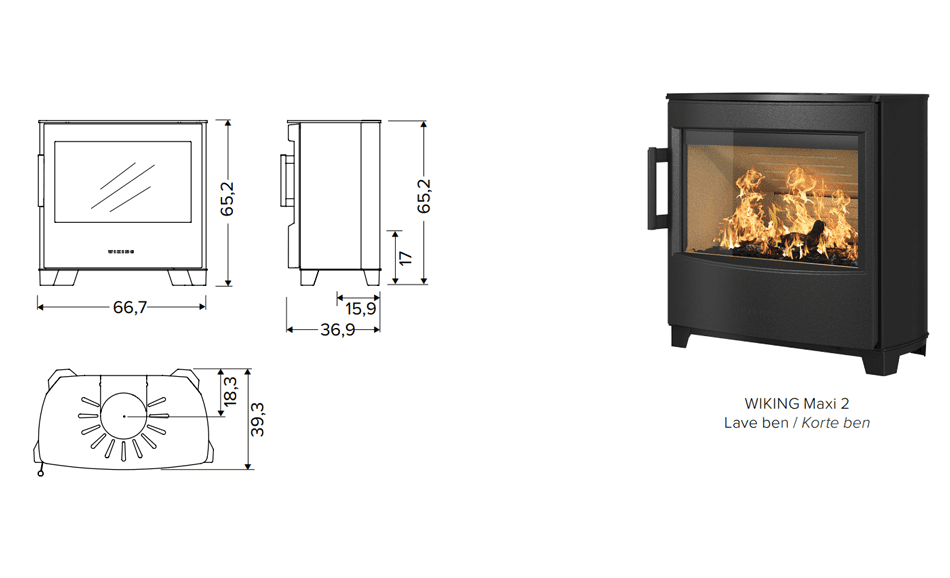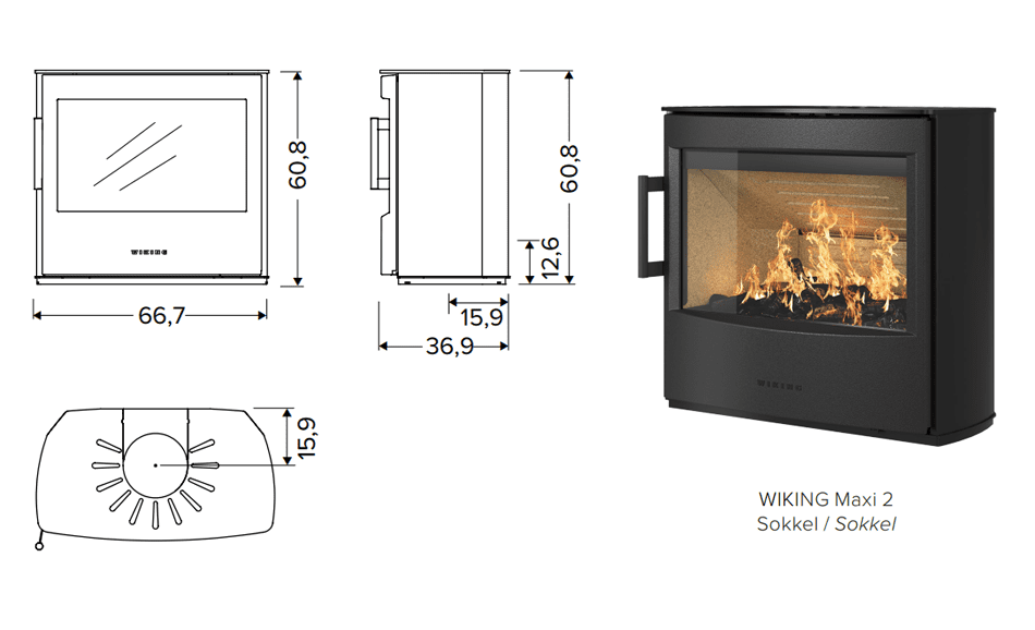 Brændeovnen fås også i to andre varianter WIKING® Maxi 4 og WIKING® Maxi 6, der er fritstående brændeovne.