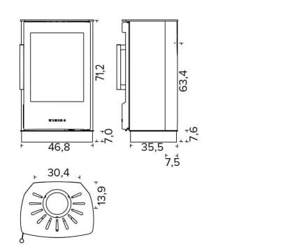 Denne brændeovnsmodel findes også i en anden variant, WIKING® Miro 1 med sideglas.