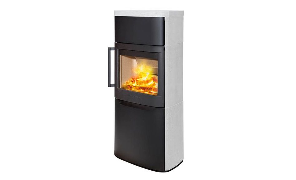 WIKING® Pala 6 med fedtsten kombinerer moderne, sort stål med eksklusive naturstenssider, som giver brændeovnen et elegant og tidløst udtryk. Fedtstenen tilfører ikke kun et smukt, naturligt udseende, men fungerer også som varmelagring, der optager varme under fyring og afgiver den langsomt og behageligt til rummet. Den store glaslåge giver et flot kig til flammerne og skaber hygge og atmosfære i hjemmet.